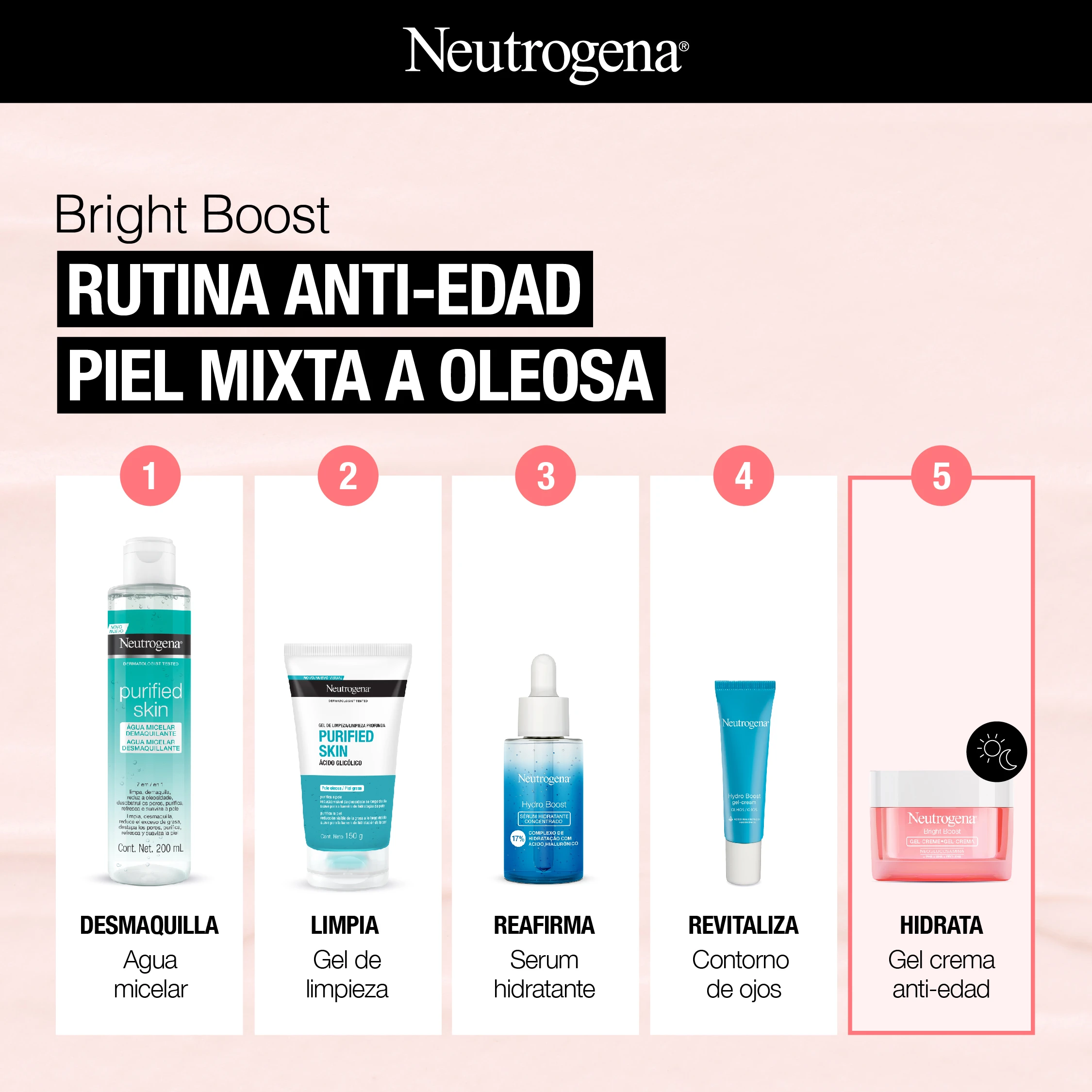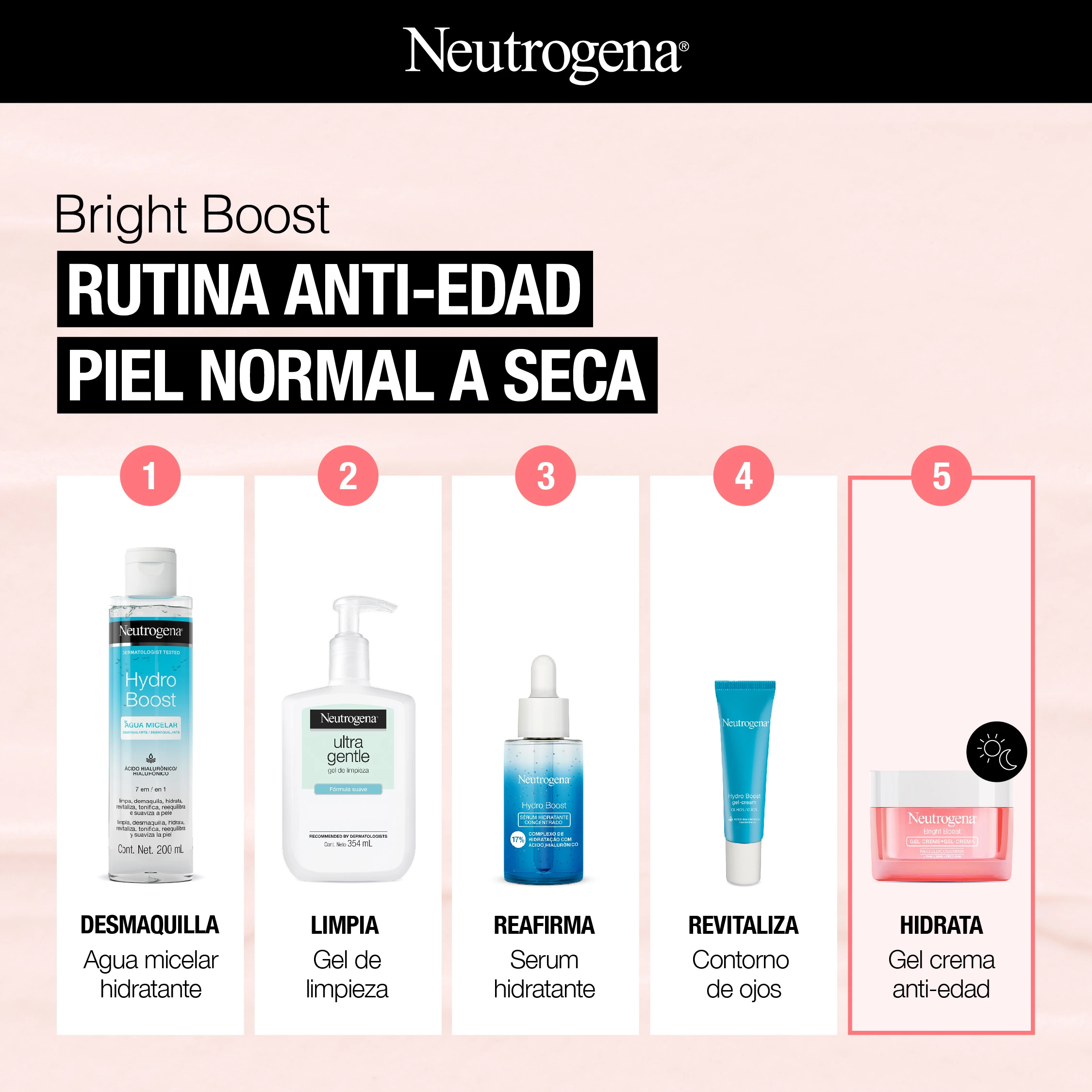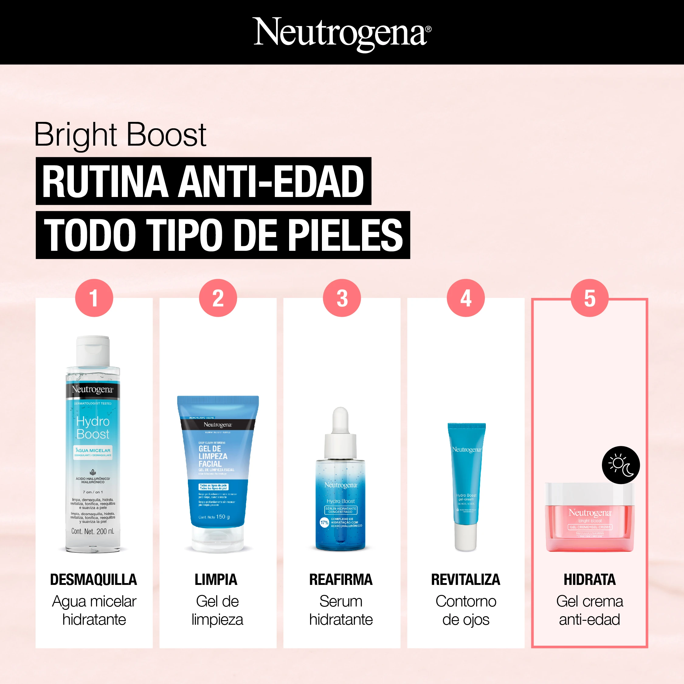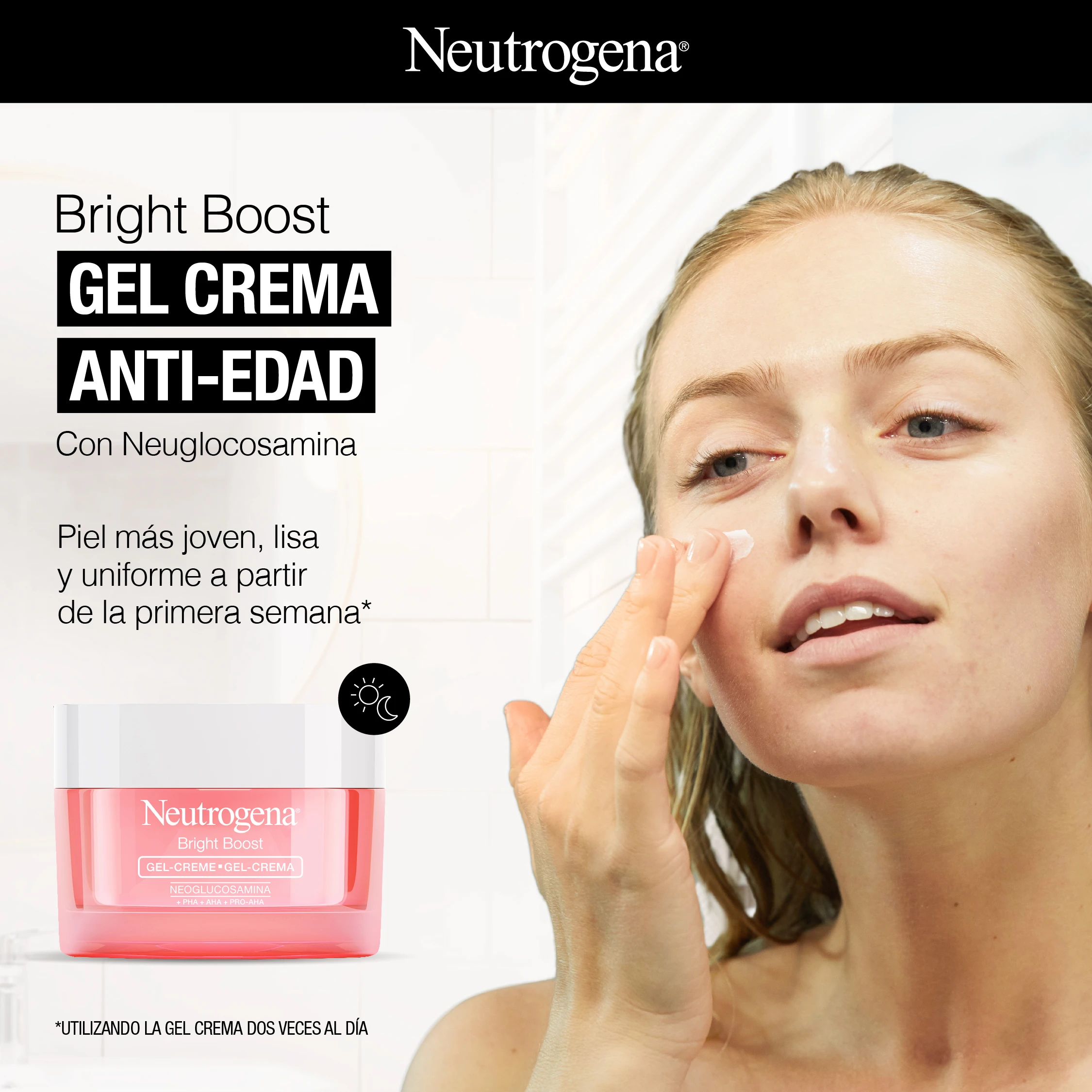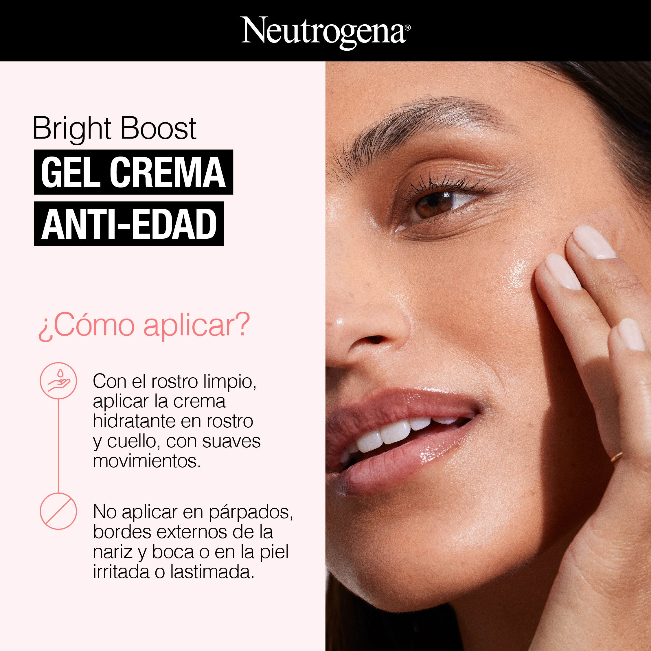 Neutrogena Bright Boost Gel Cream hidrata e ilumina la piel. Ayuda a reducir las manchas causadas por el sol y el enrojecimiento facial.